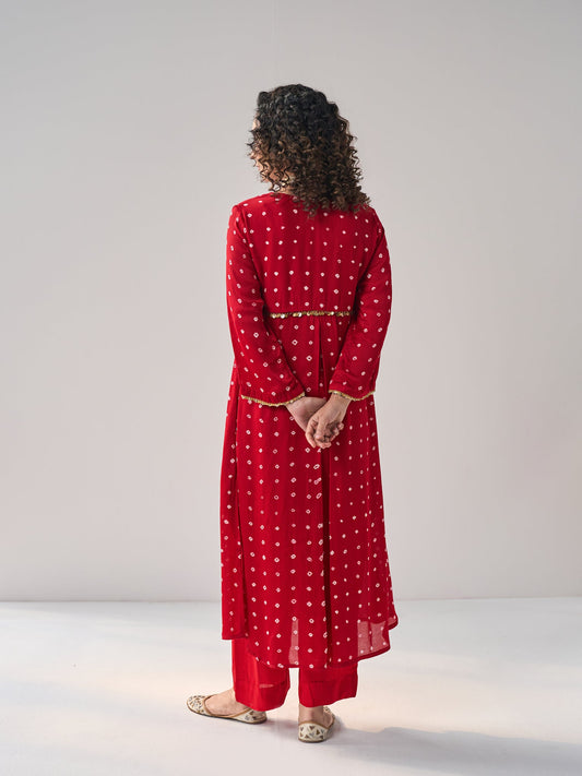 Sold outAiyana - The Red Bandhani Kurta Set