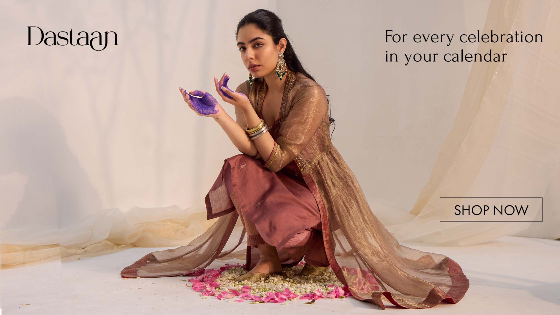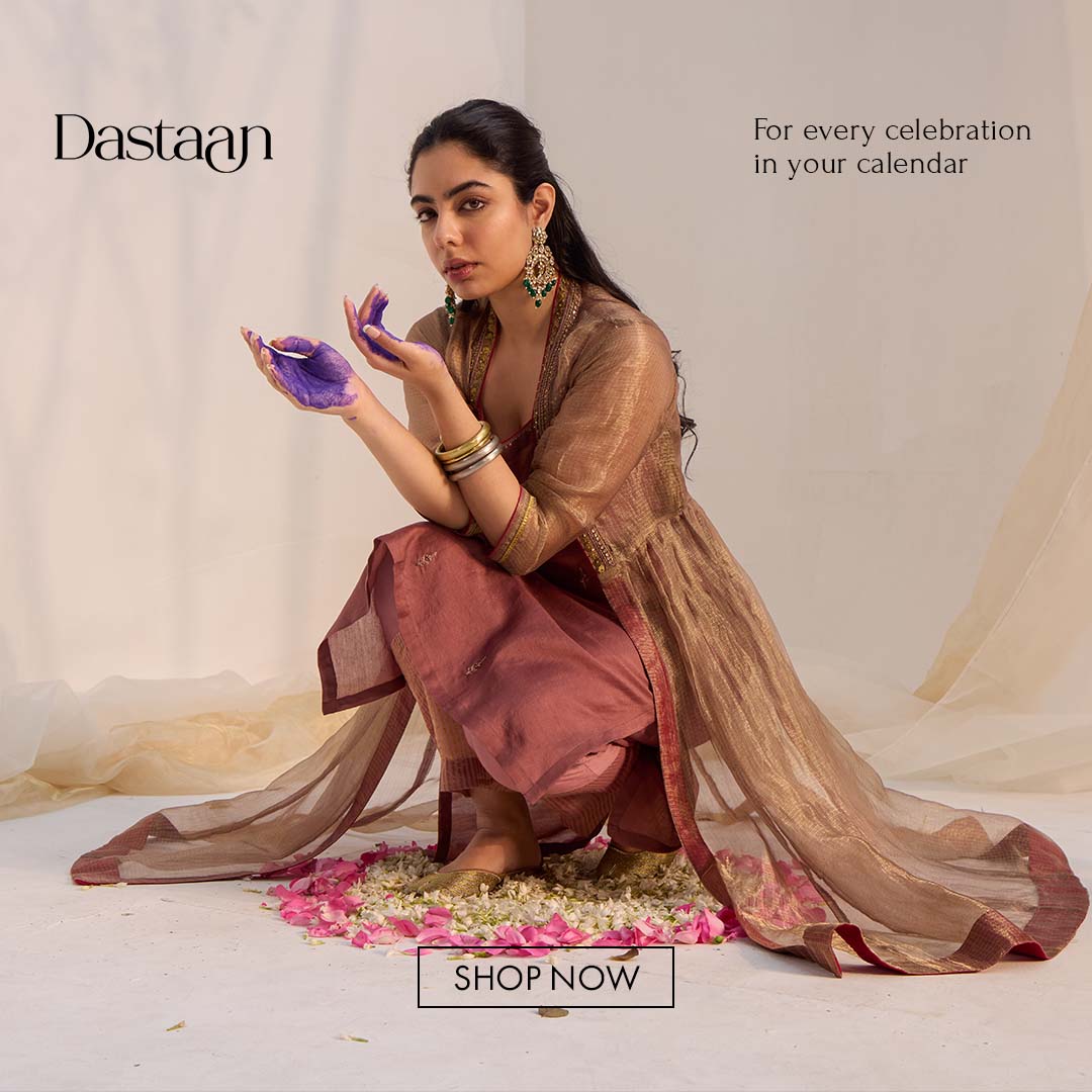 Urmi Daga in Nosheen - Earth Brown Angrakha Anarkali with Mukaish Work