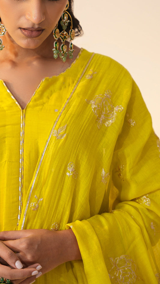 Layina - Sunset Yellow Anarkali with Mukaish Work