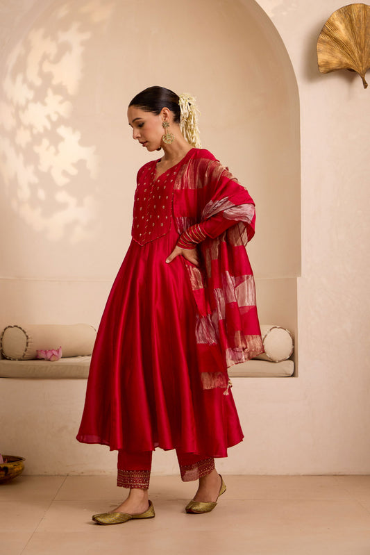 Falak - Chanderi Angrakha Suit with Bandhani Print