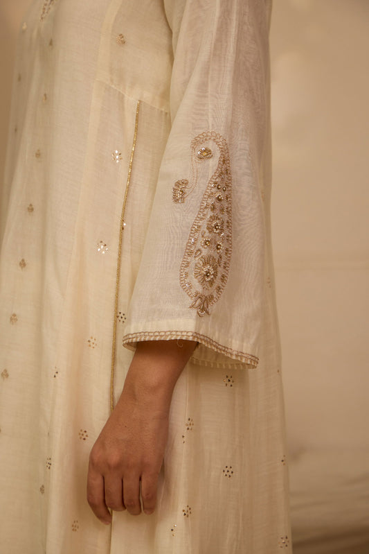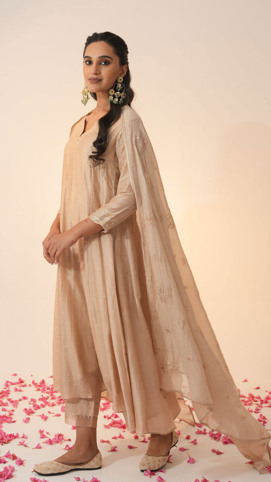 Urmi Daga in Nosheen - Earth Brown Angrakha Anarkali with Mukaish Work