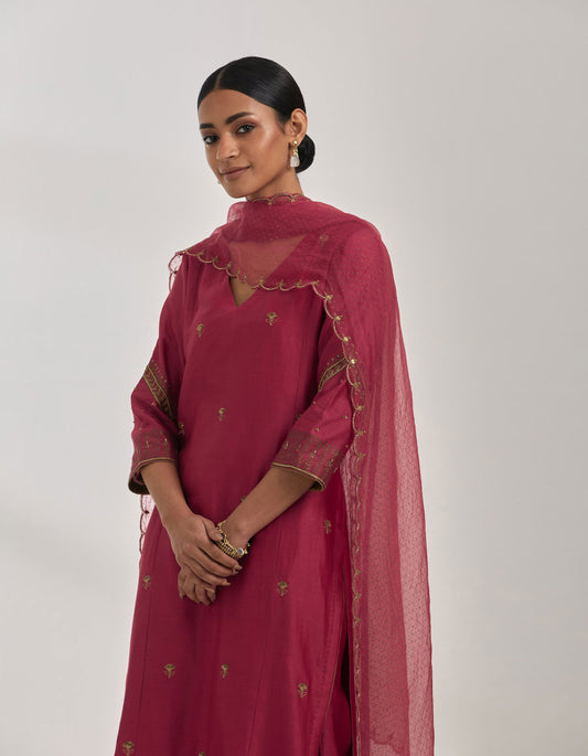 Sold outAmbreen - Red Chanderi Silk Suit Set