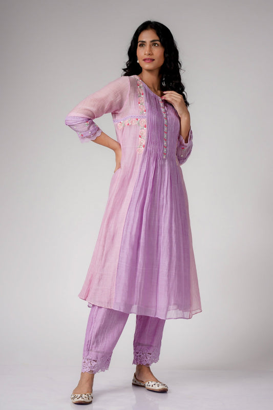Siddra- Blush Pink Front Pleated Suit Set with Mukaish Work