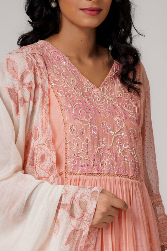 Nazam - Peony Peach Anarkali with Mukaish Work