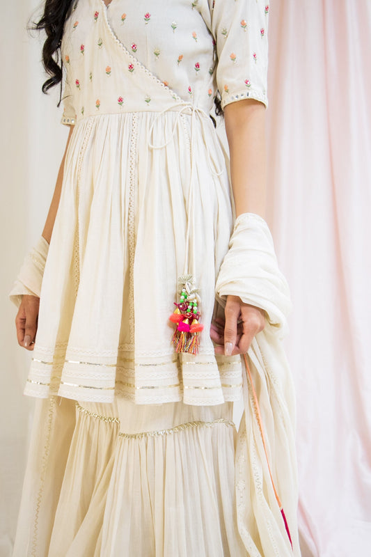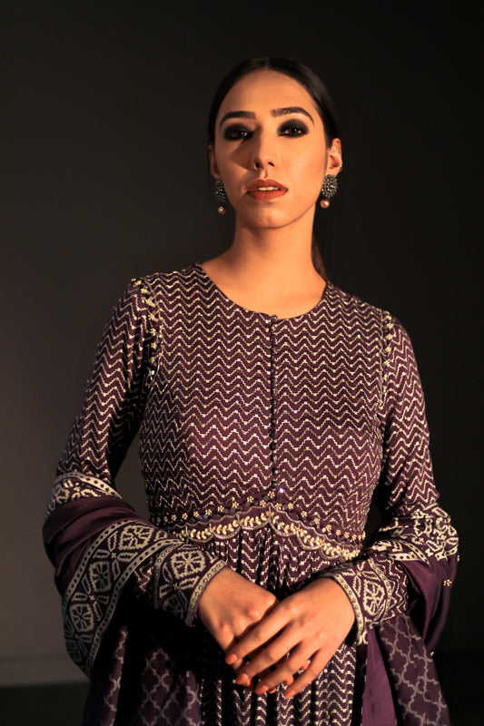 Nosheen - Earth Brown Angrakha Anarkali with Mukaish Work